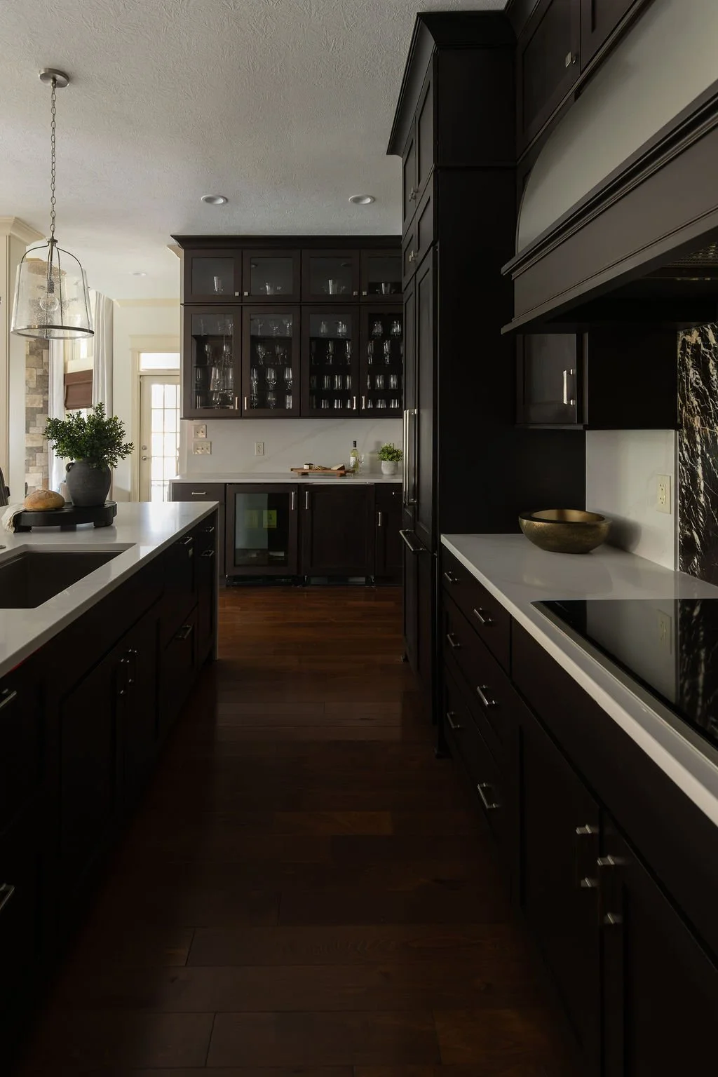 This luxury kitchen remodel in Carmel, Indiana is a refreshed vision of a home originally designed by Everything Home Designs fifteen years ago. Our longtime clients were ready to fall in love with their home again, and a thoughtful remodeling transformation made it possible. While the original custom cabinetry remained, we reimagined every supporting element — new countertops, designer lighting, backsplash, updated wood tones, paint, furnishings, and drapery. The result is a completely renewed kitchen that blends timeless design with modern functionality. Our turnkey design-build remodeling process ensures a seamless experience from concept through construction.